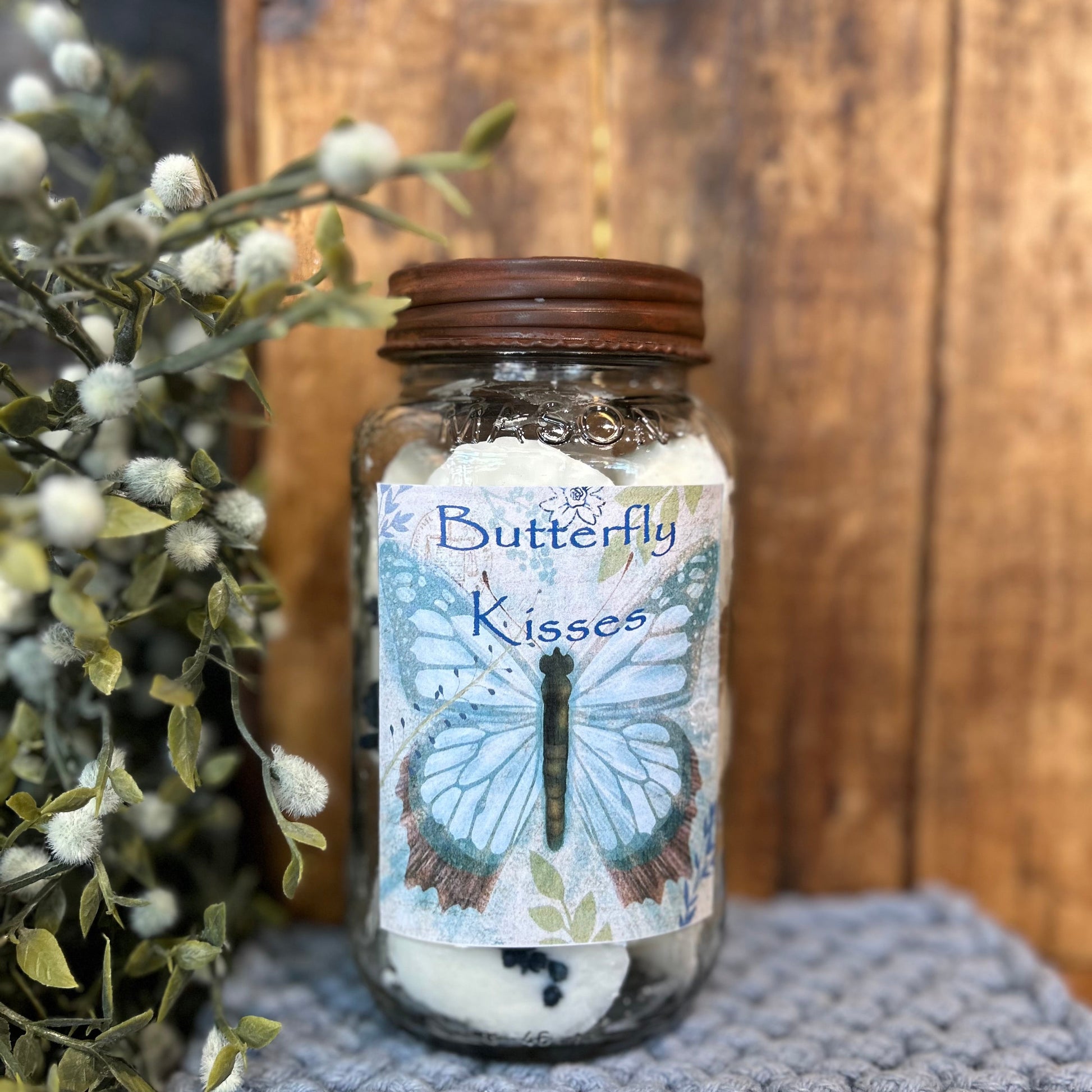 Butterfly Kisses - This scent is sweet and soft with almond, nutmeg, coconut milk and sugary vanilla. It has a touch of sandalwood and will have you feeling that flutter of a true butterflies!