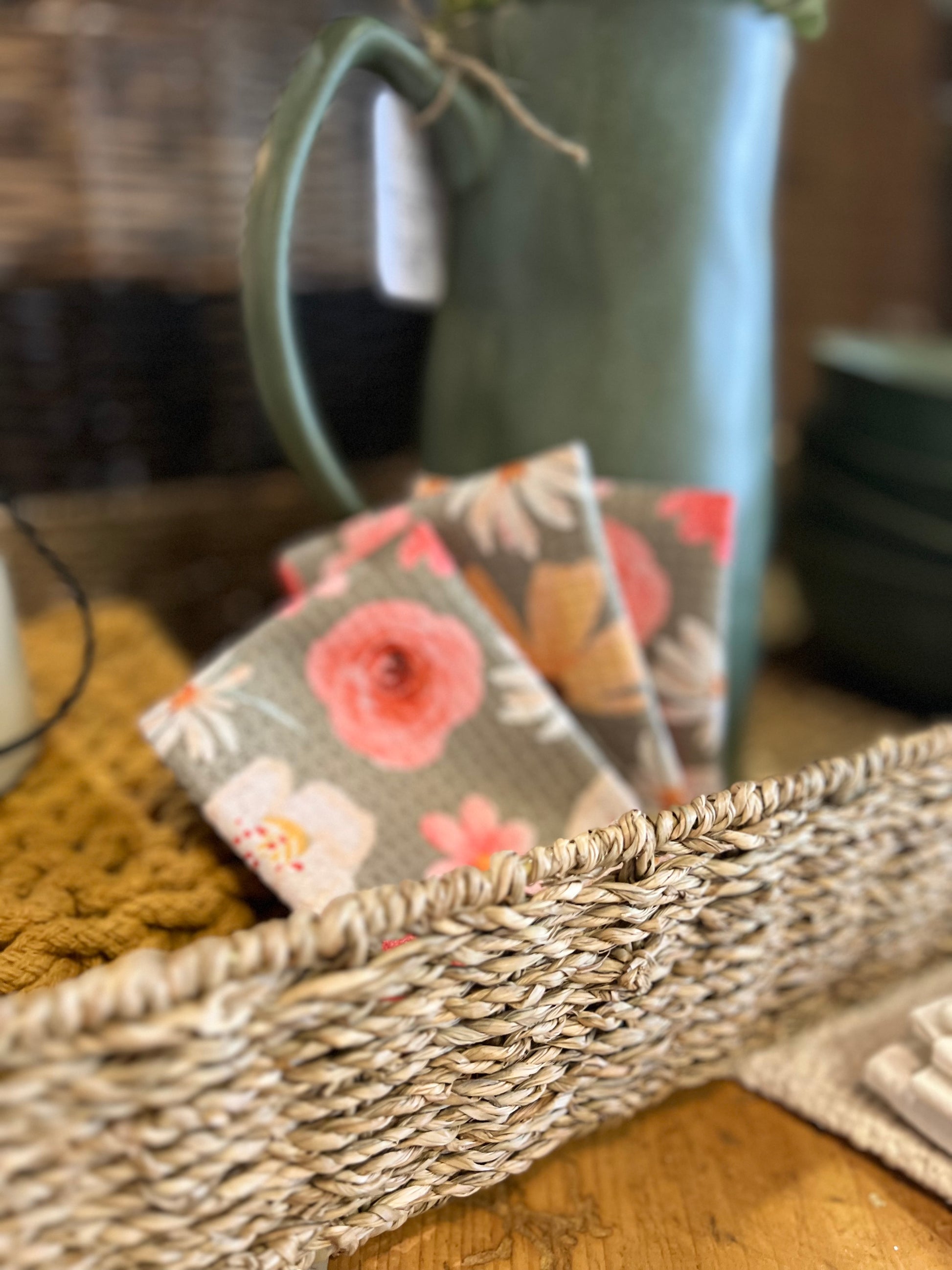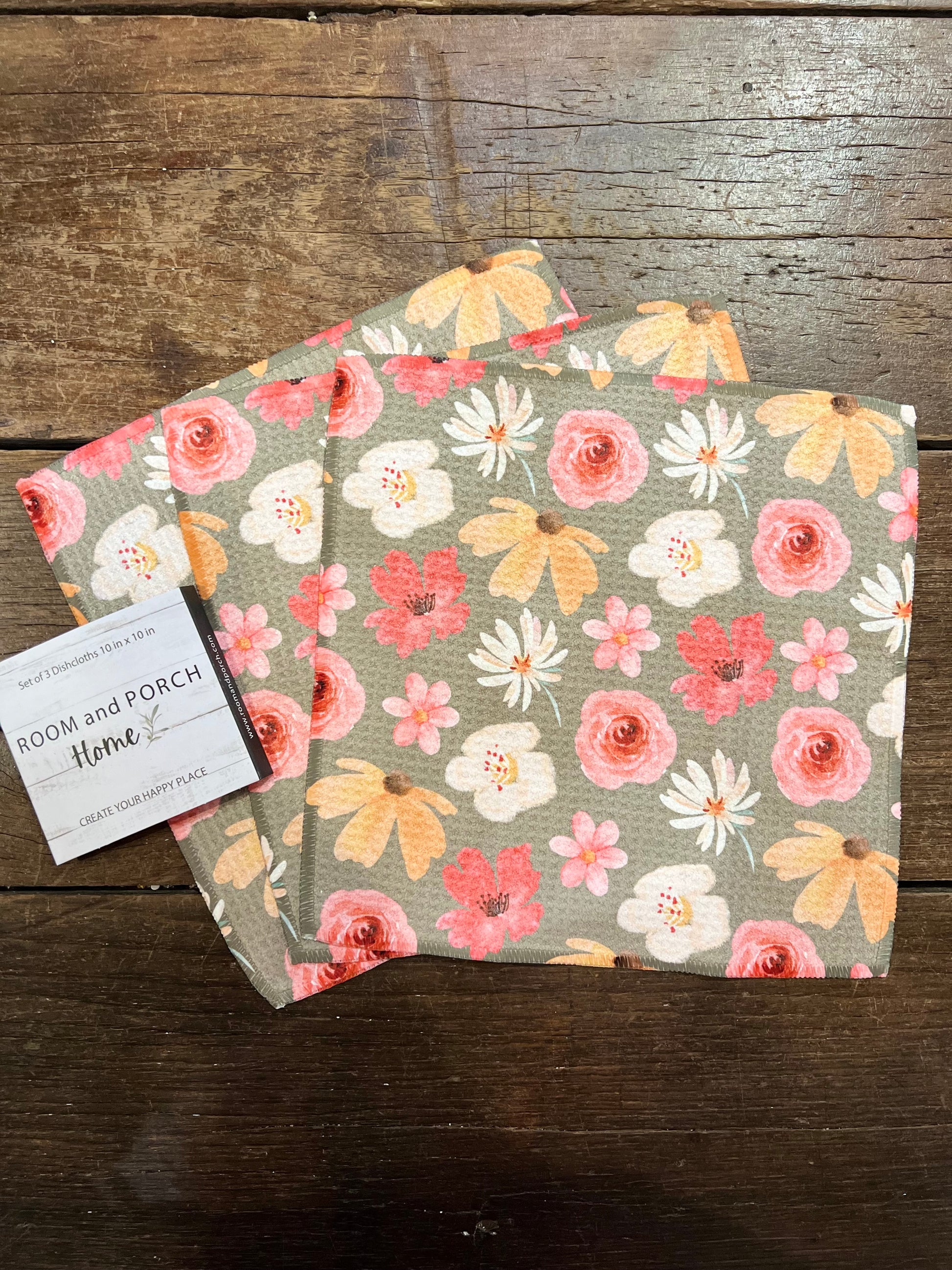Happy Flowers - Set of 3 Dishcloths - (Olive)